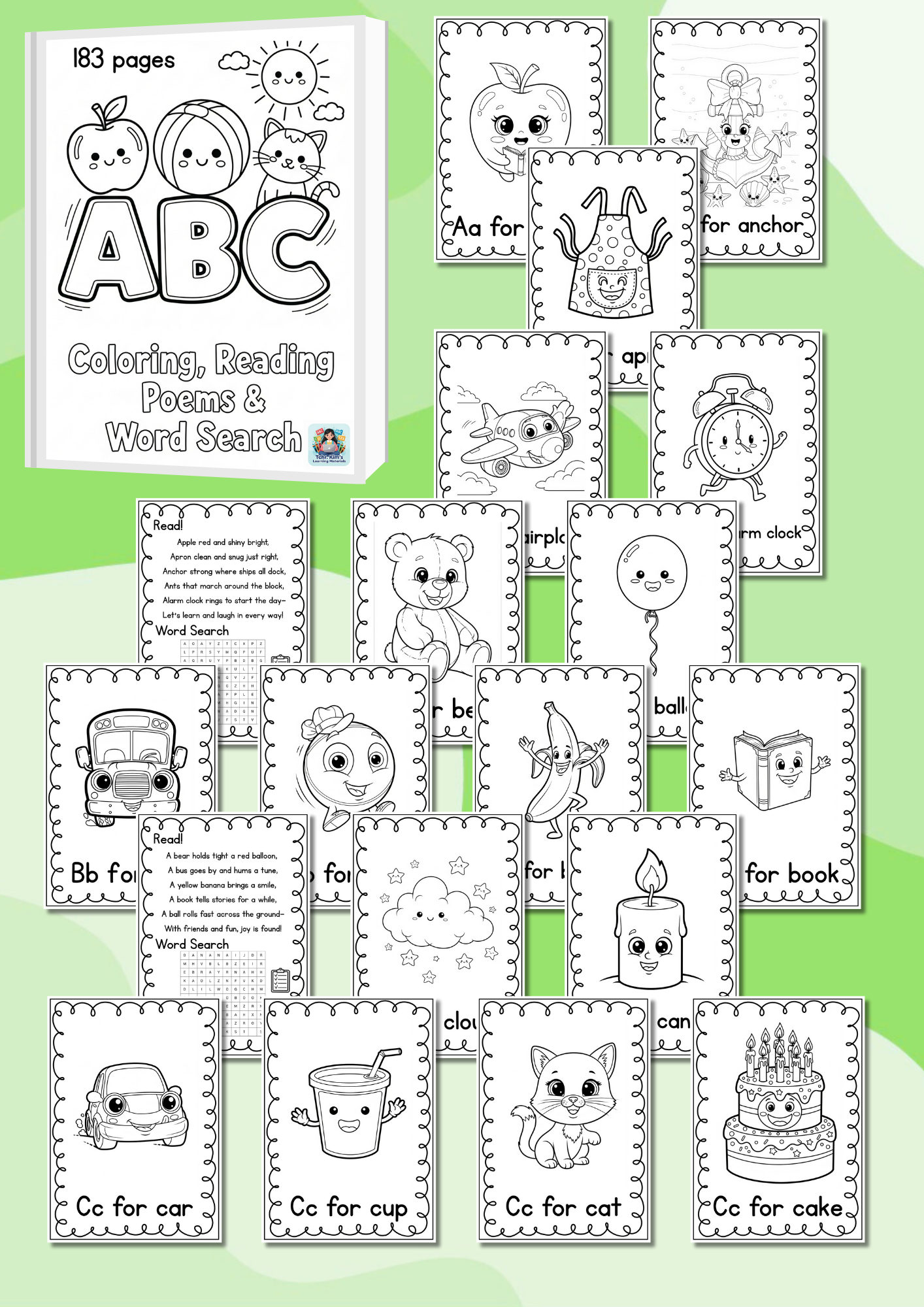 A comprehensive 100+ ABC learning pack filled with colorful images, engaging wordsearch activities, and guided reading exercises. Designed to make alphabet mastery interactive and fun for young learners.