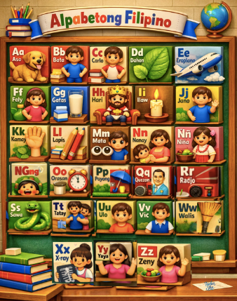 Alpabetong Filipino classroom poster — ready to use with vibrant illustrations for each letter
