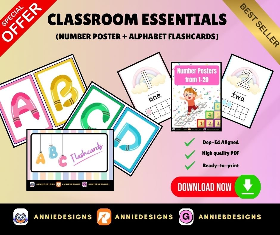 Be the first to review “Classroom Essentials (Number Poster & Alphabet Flashcards) | By: Annie Bustillos @anniedesigns” Cancel reply