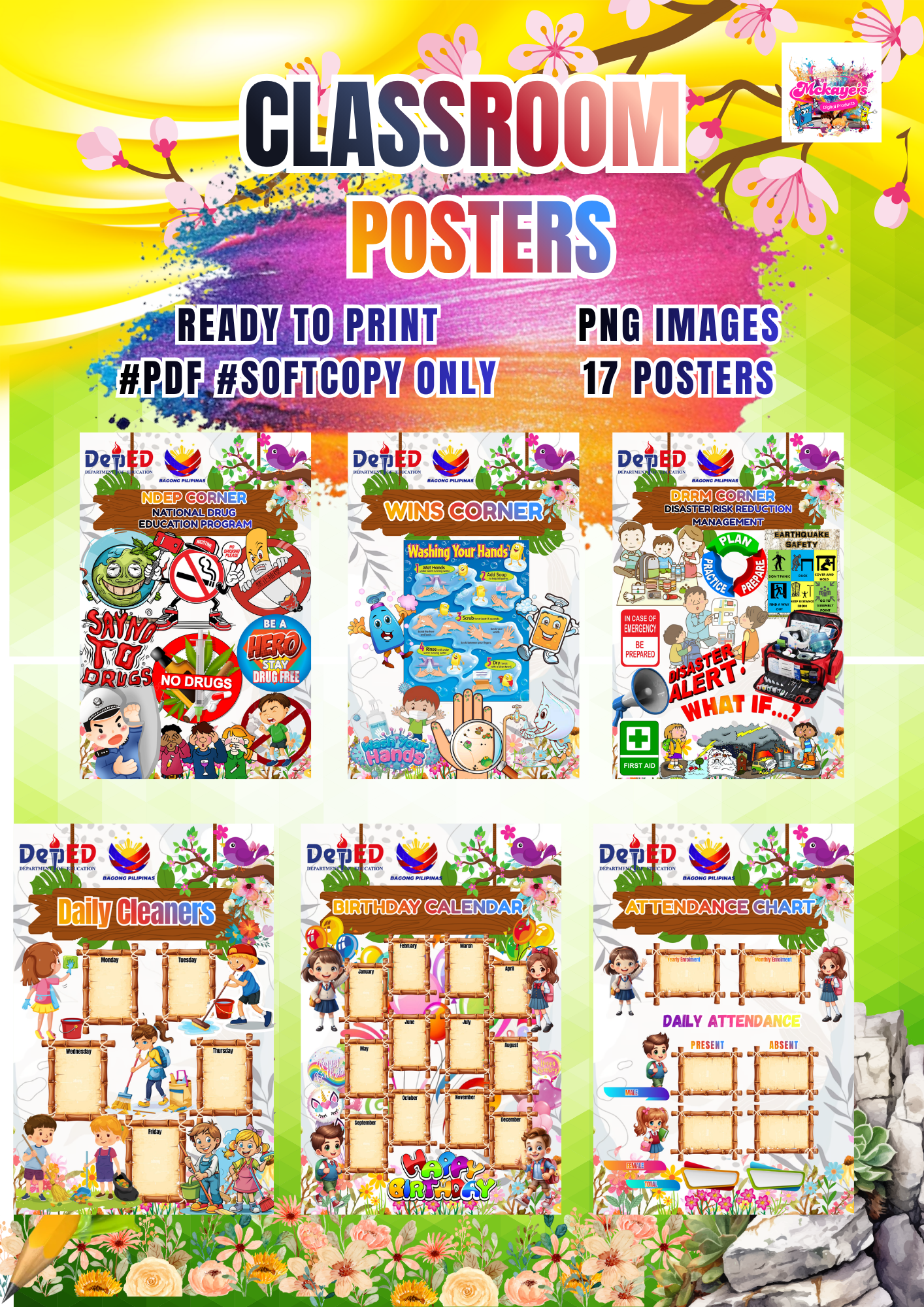 Classroom Posters Bundle (Mission, Vision, DRRM, WINS, Birthday Calendar & More!) 🏫