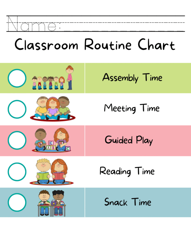 A colorful and engaging classroom routine chart designed to help students understand and follow daily schedules. It provides visual cues that support organization, independence, and smooth classroom transitions.