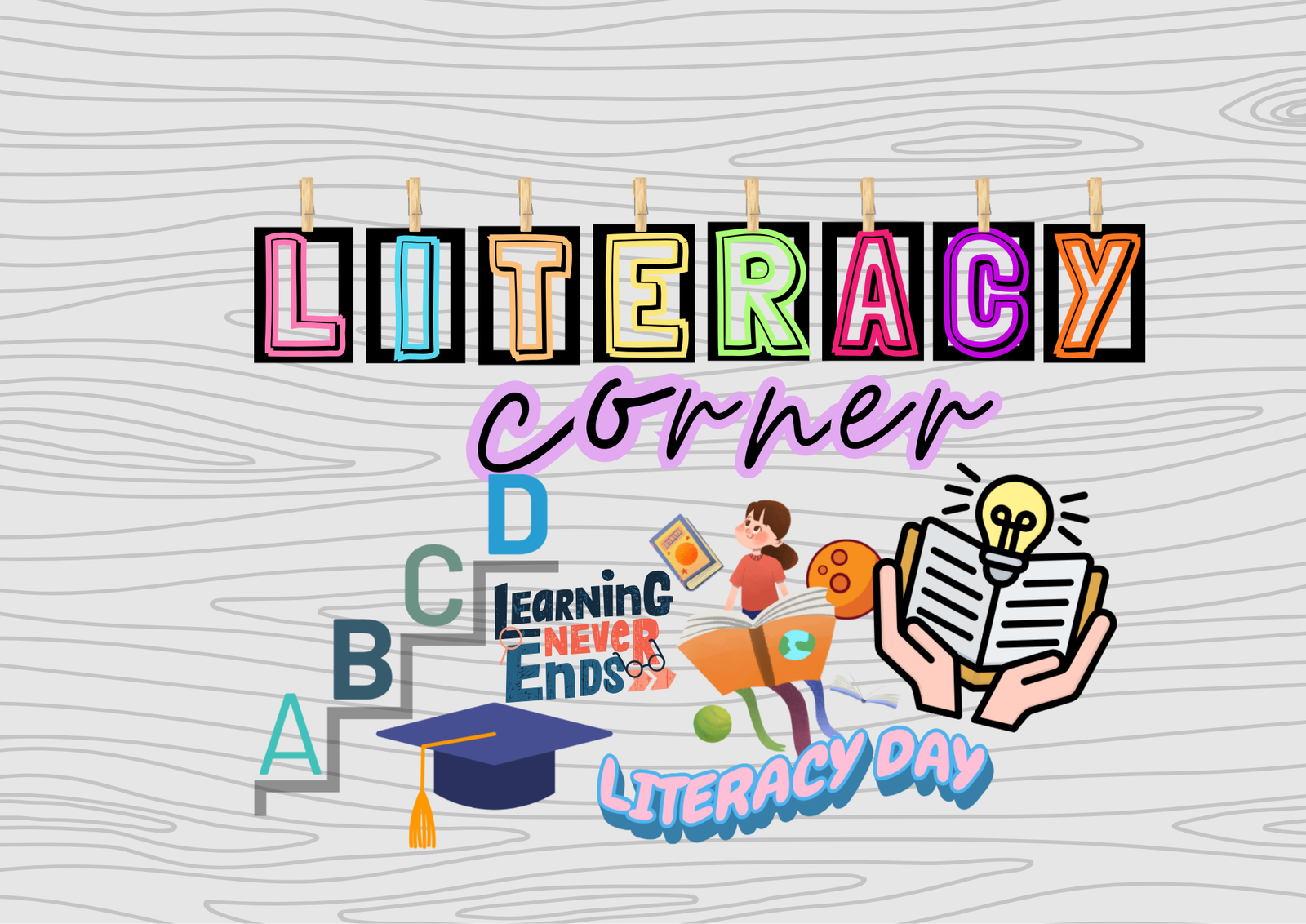 Colorful Literacy Wall Sign – Reading & Learning Theme