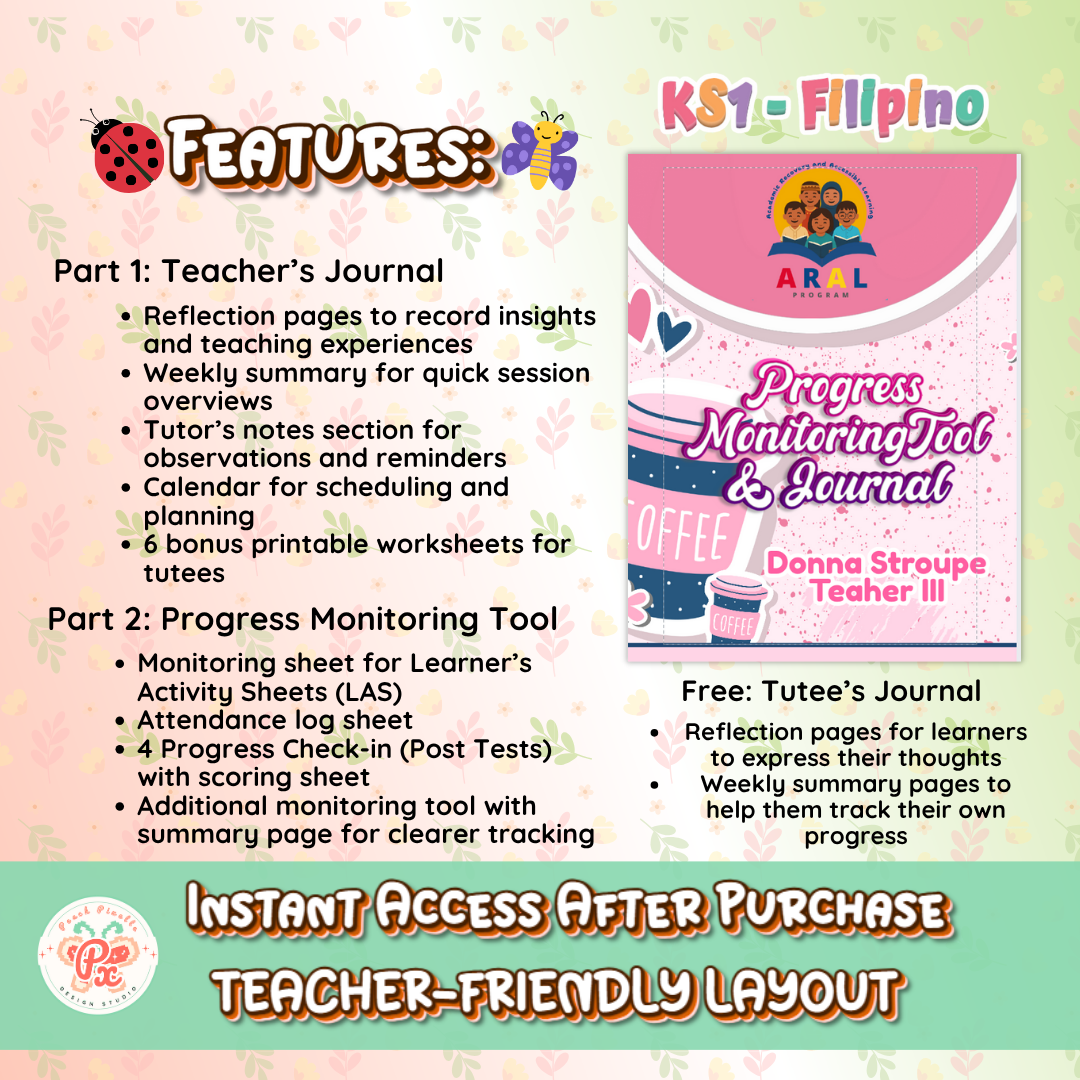 Bonus: FREE Tutee’s Journal (Filipino Edition) – Reflection and weekly summary pages to help learners build self-awareness.