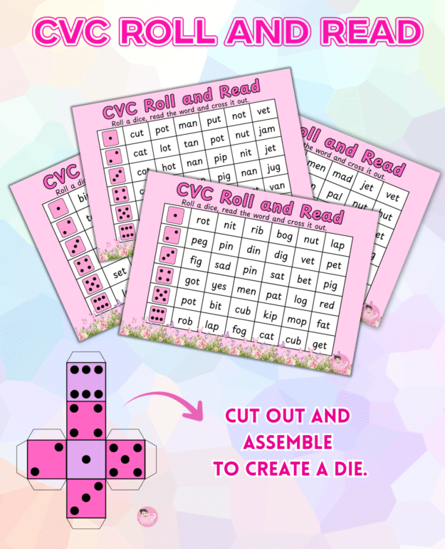 Students simply roll a die, read the word, and cross it out. The first to finish a row wins! 🏆