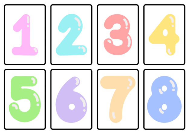 These colorful Number Flash Cards help children recognize numbers and practice counting using bright and attractive fruit illustrations.