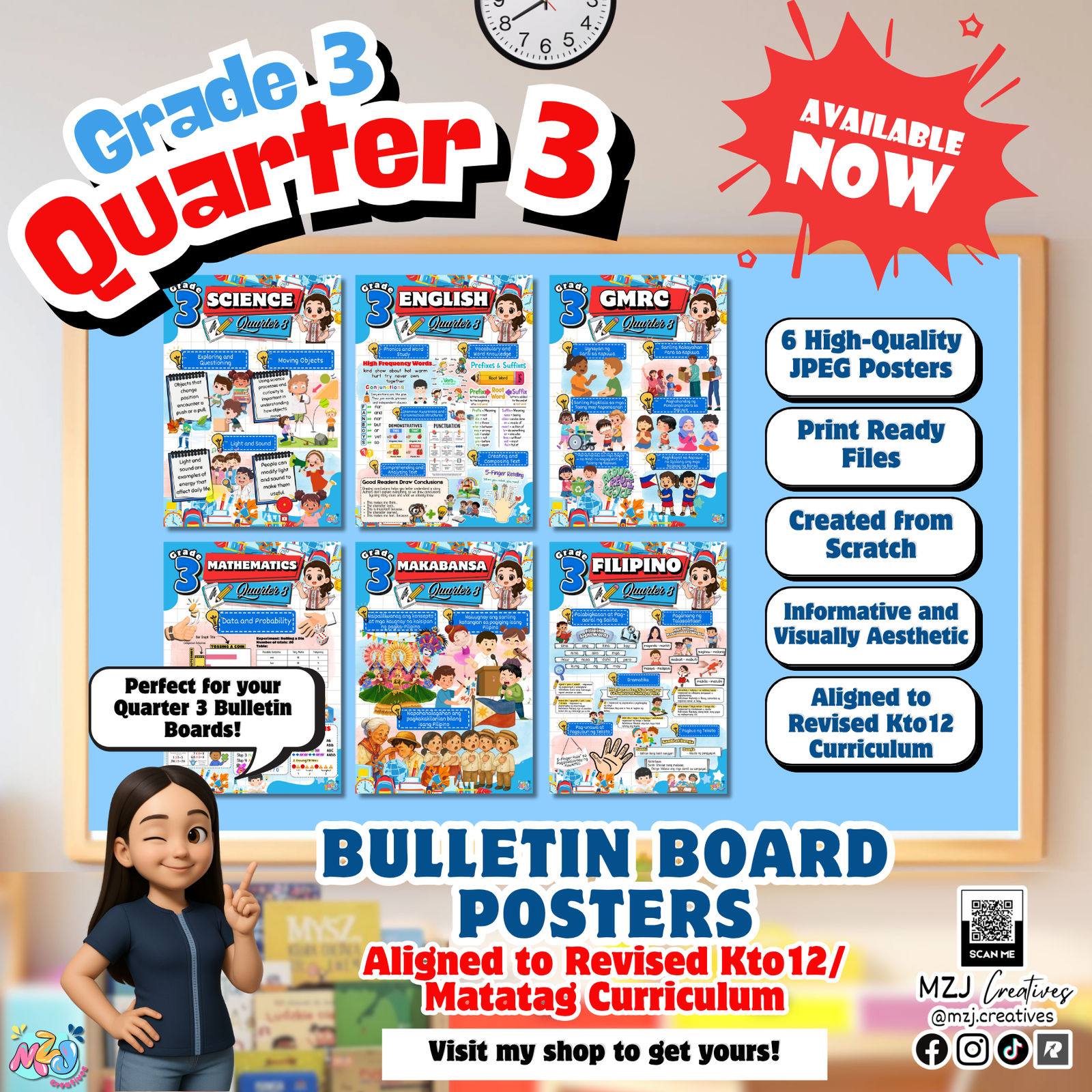 This Grade 3 Bulletin Board Poster Set – Quarter 3 (Matatag Curriculum) is here to make your life easier! 💡