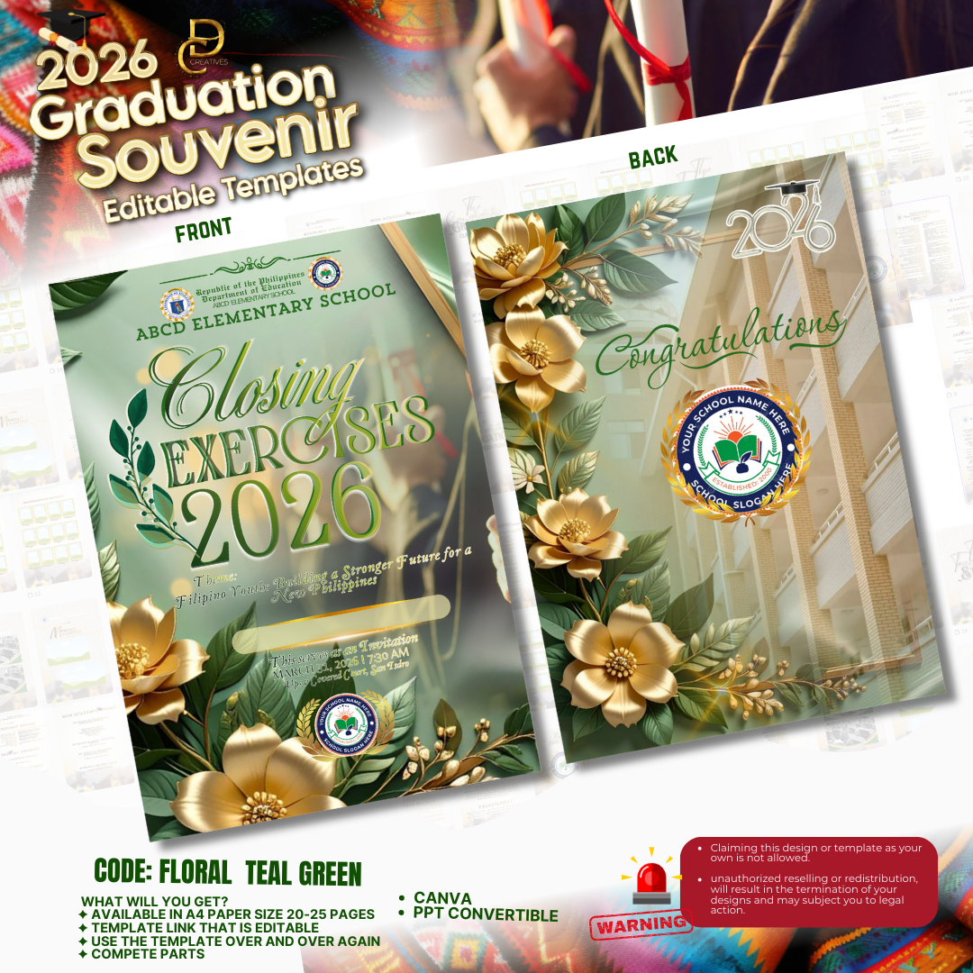 Graduation Souvenir 2026- FLORAL TEAL GREEN