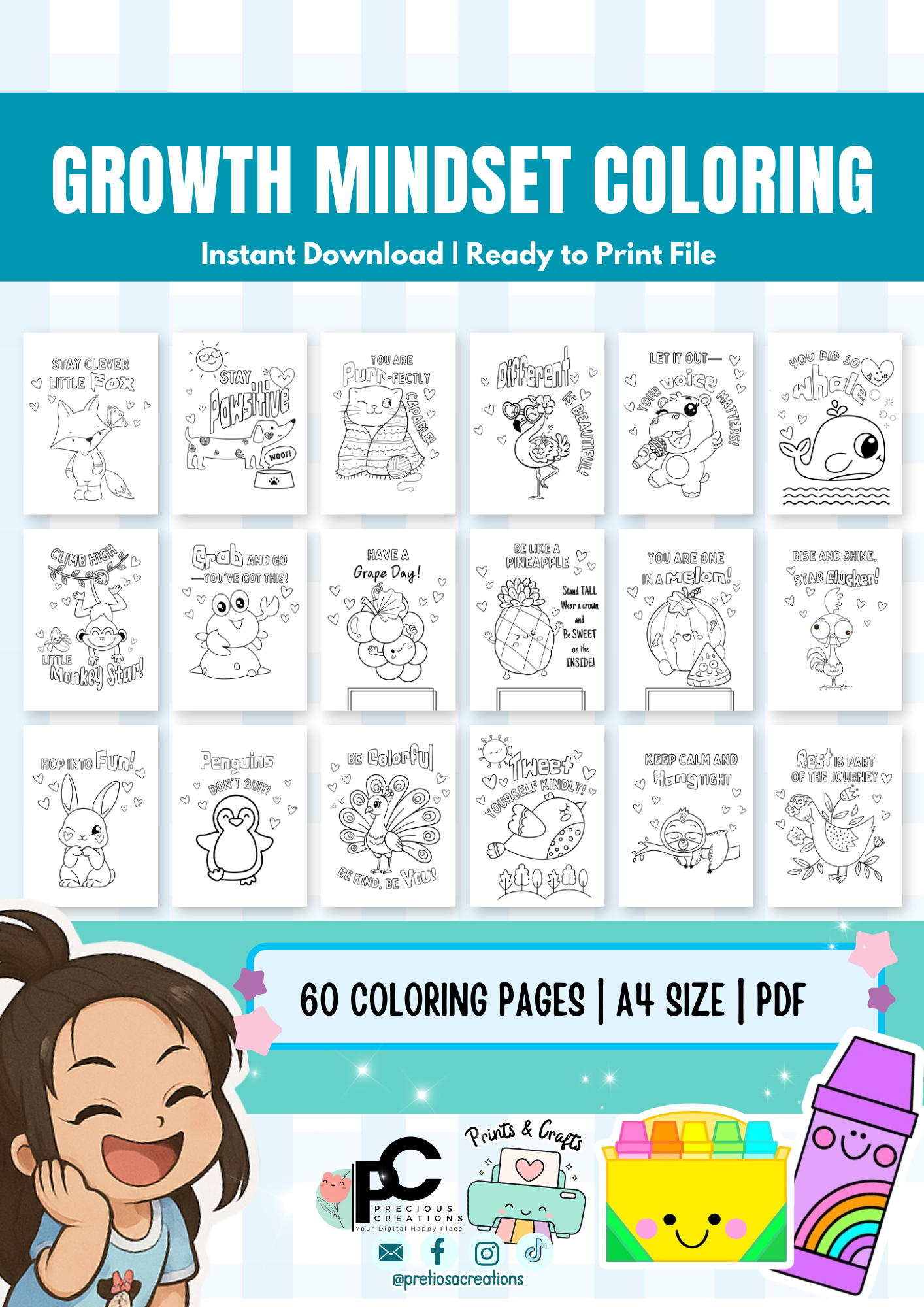 Help your child grow with confidence and creativity using the Growth Mindset Coloring Book for Kids.