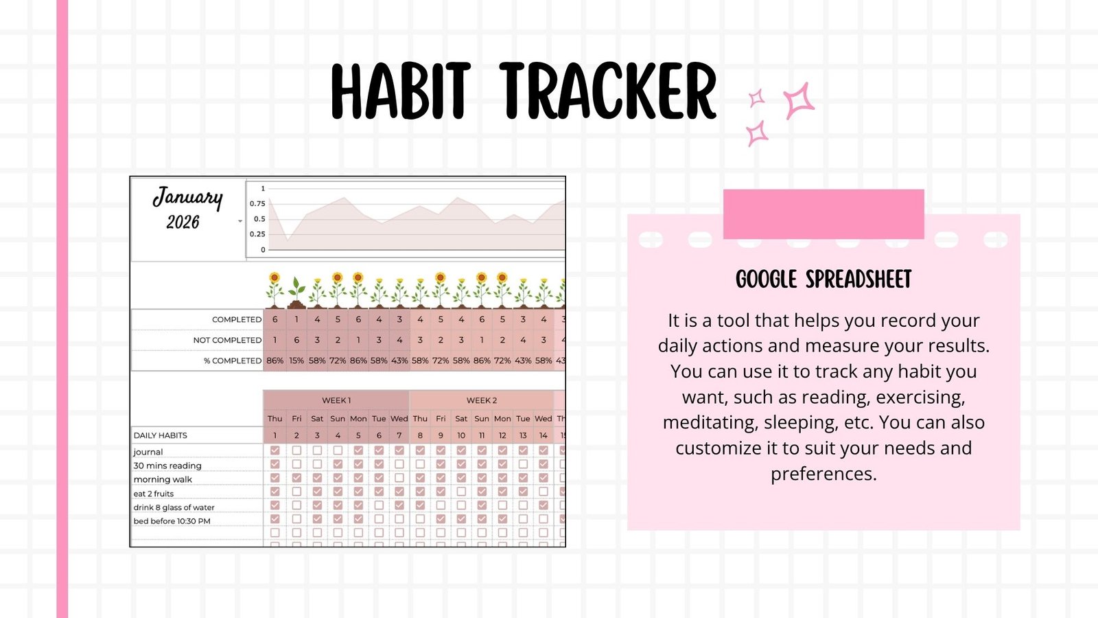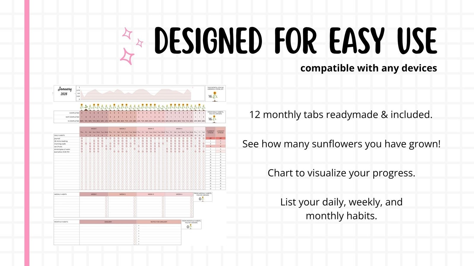Device Compatible: Access your tracker on your laptop, tablet, or phone. Perfect for logging habits on the go!