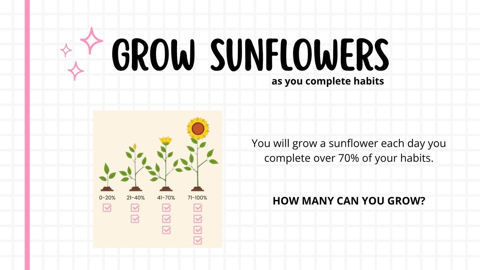 Start Growing: List your habits and watch your sunflowers bloom as you check off your tasks!