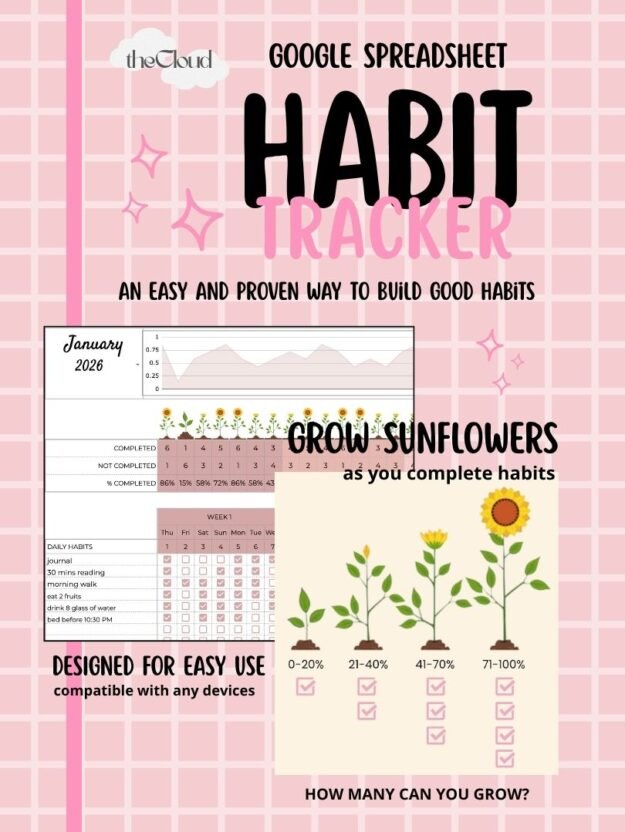Tired of boring spreadsheets? The Cloud Habit Tracker turns self-improvement into a visual garden. Whether you’re tracking your morning walk, reading time, or water intake, this tracker provides an easy and proven way to build good habits through instant visual feedback.