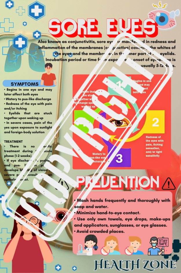 This health infographics is about the facts and details about the Sore eyes or pink eyes. Facts and details are guarantee true and relatively factual.