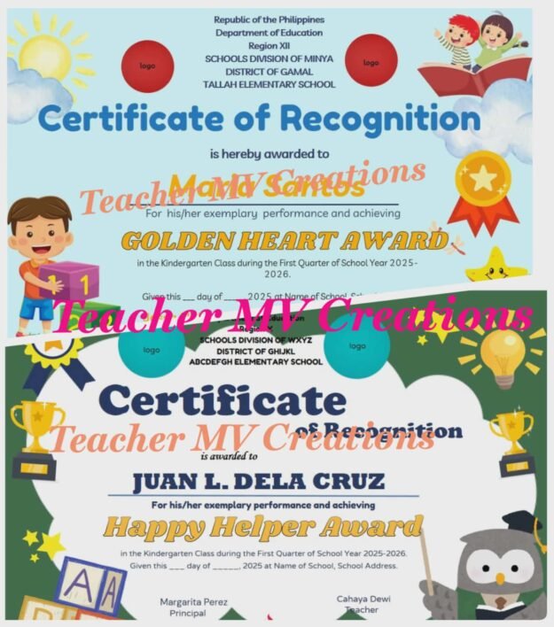 Kindergarten Certificates Matatag