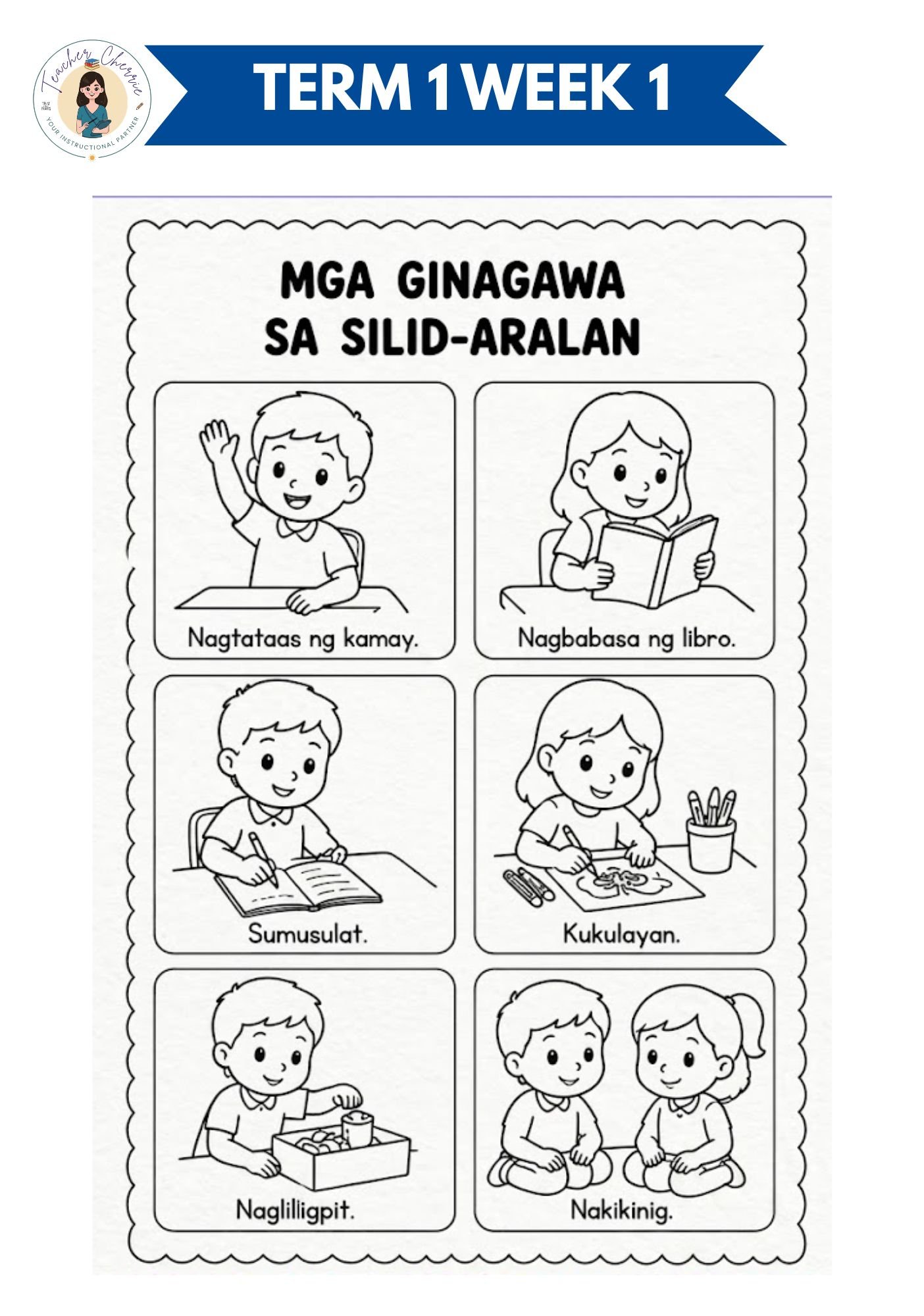 During this week, emphasis is placed on learning simple classroom rules and routines, such as listening when someone is speaking, following simple instructions, lining up properly, taking care of materials, and showing respect to others. Special attention is given to the rule “Makinig” (Listen) to help children understand the importance of listening to the teacher and friends in order to learn and stay safe.