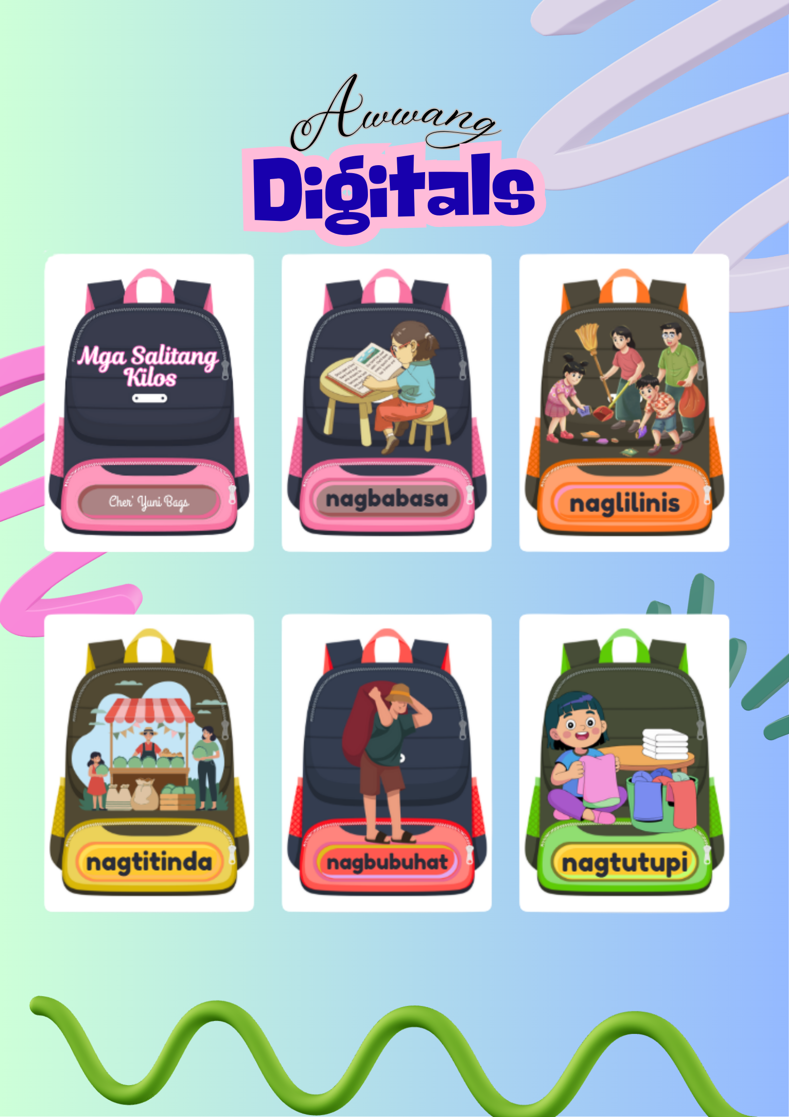 Visualizing Verbs: Mga Salitang Kilos . Using these illustrated flashcards to help students identify and understand different actions like nagtitinda (selling), nagbubuhat (lifting), and nagtutupi (folding). Visual aids make vocabulary retention so much easier!