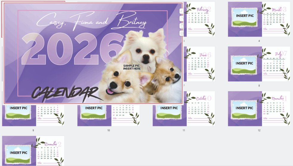 A beautifully designed personalized calendar featuring custom photos, colors, fonts, and editable text—crafted to make every month uniquely yours.