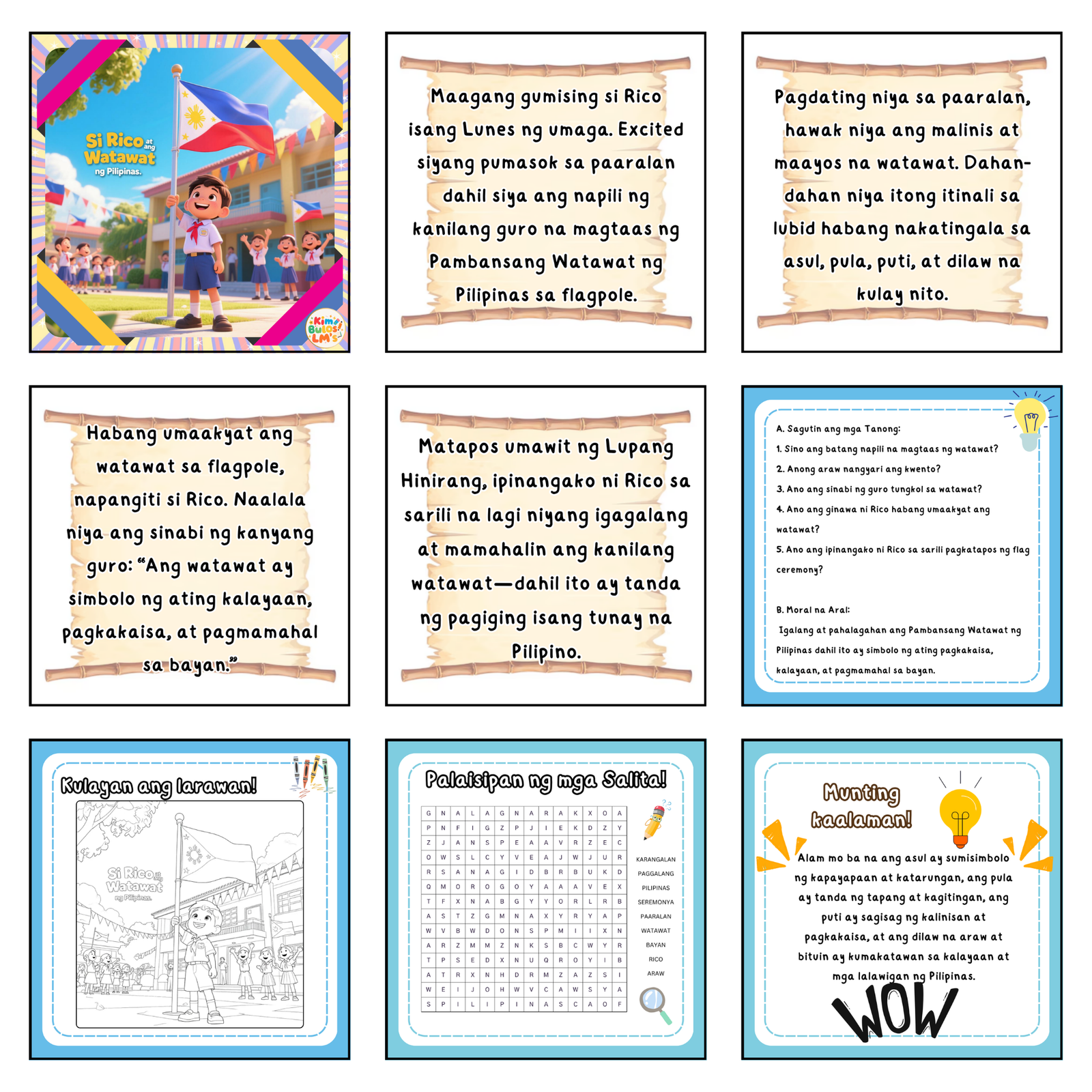 This collection includes 15 short stories that introduce learners to the Pambansang Sagisag ng Pilipinas (National Symbols of the Philippines) in a fun and meaningful way. Each story highlights one national symbol, its importance, and its role in shaping Filipino identity and patriotism. The stories are written in simple, engaging language suitable for young readers, making them ideal for classroom discussions, reading comprehension, and character-building lessons.