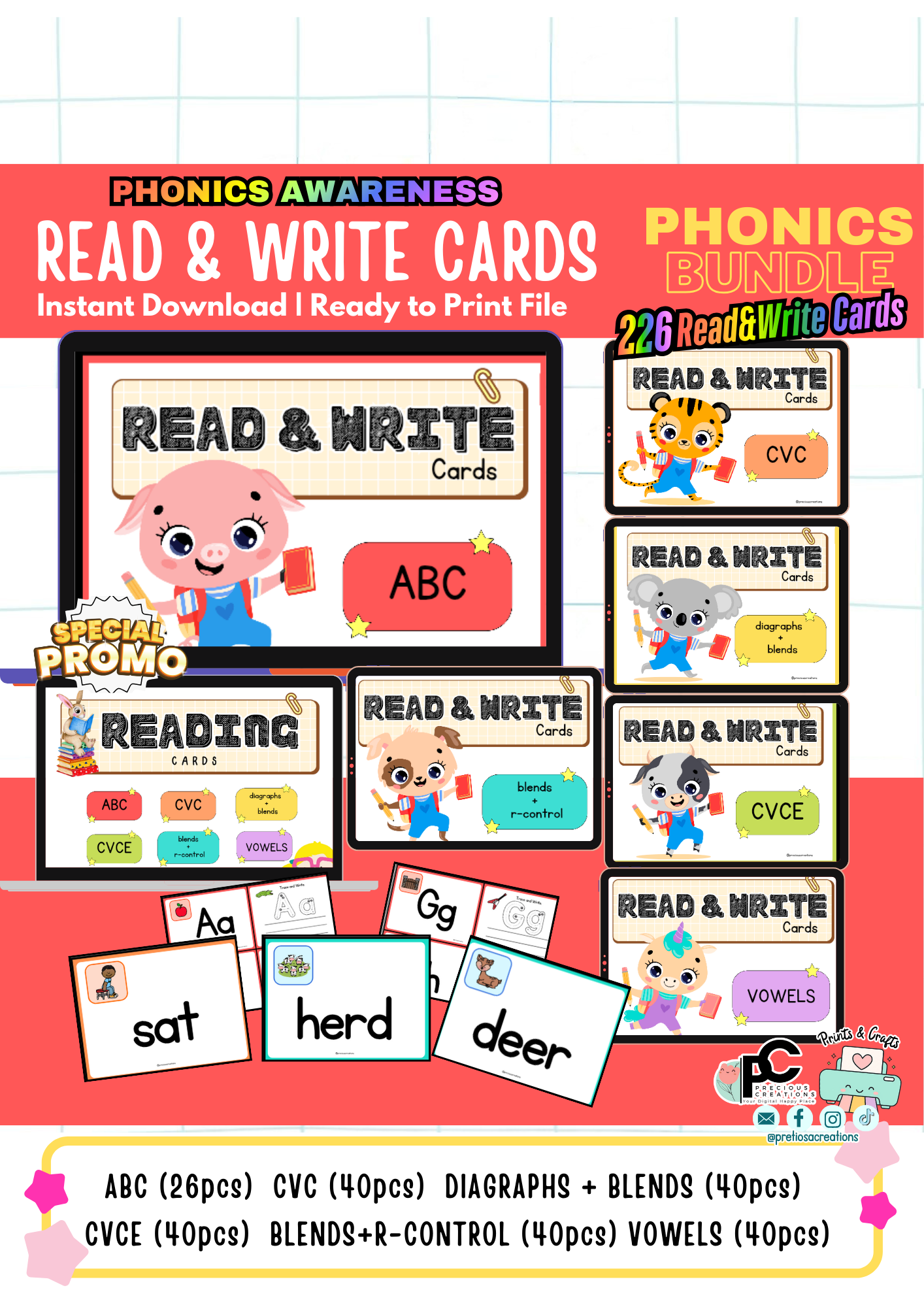 ✅ TOTAL: 226 Interactive Phonics Cards