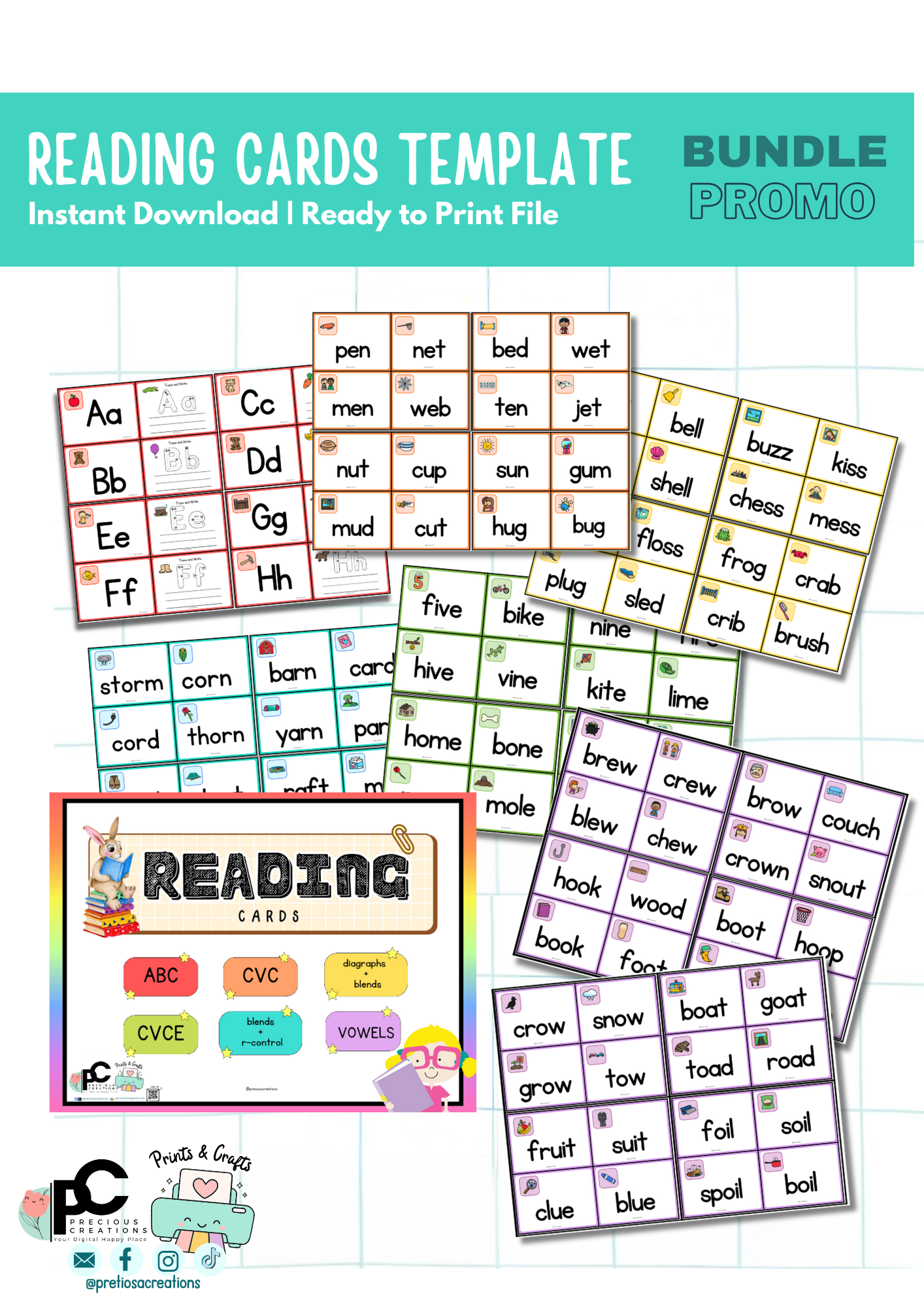 ✔ Reading-only cards version (smaller card template)