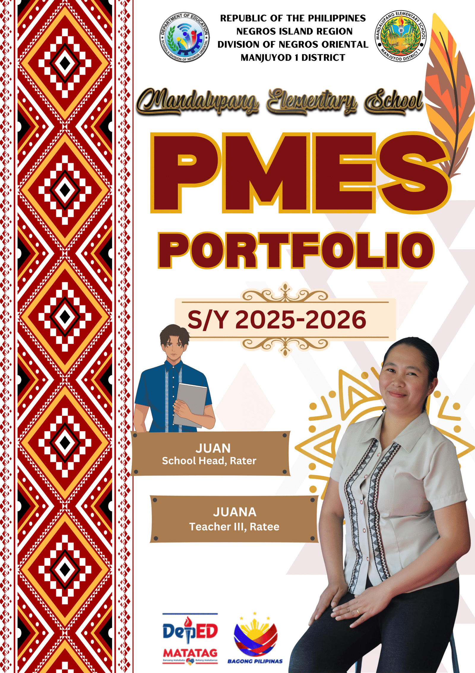 Less hassle in preparing your PMES portfolio. Provided link in google drive for easy downloading of PPT format. Also Canva editable. Ethnic theme….