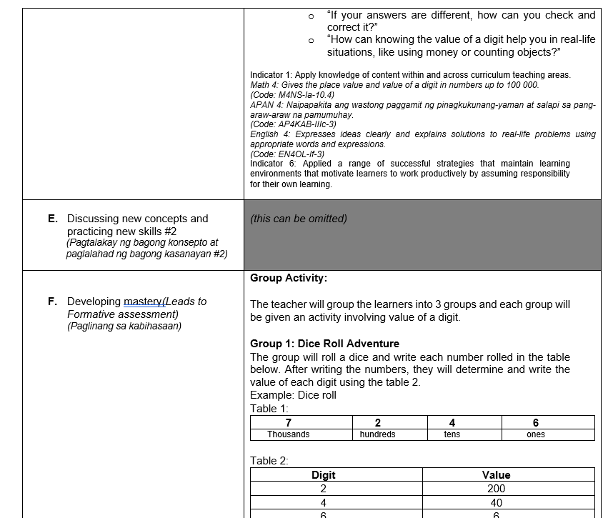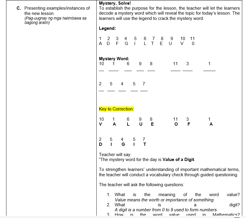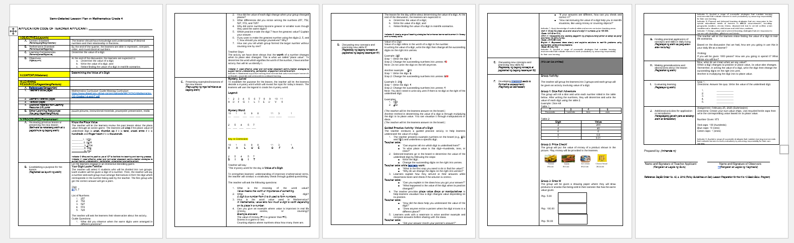 Semi-detailed lesson plan in Math 4 Q4 Value of a Digit