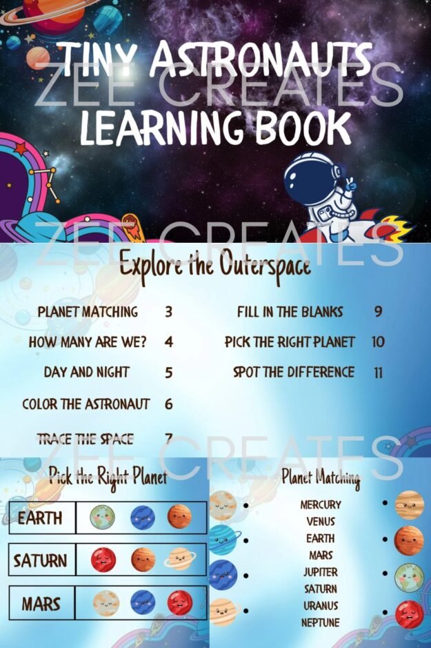 This printable activity book is designed for kids ages to explore planets, rockets, and outer space while developing essential early learning skills.